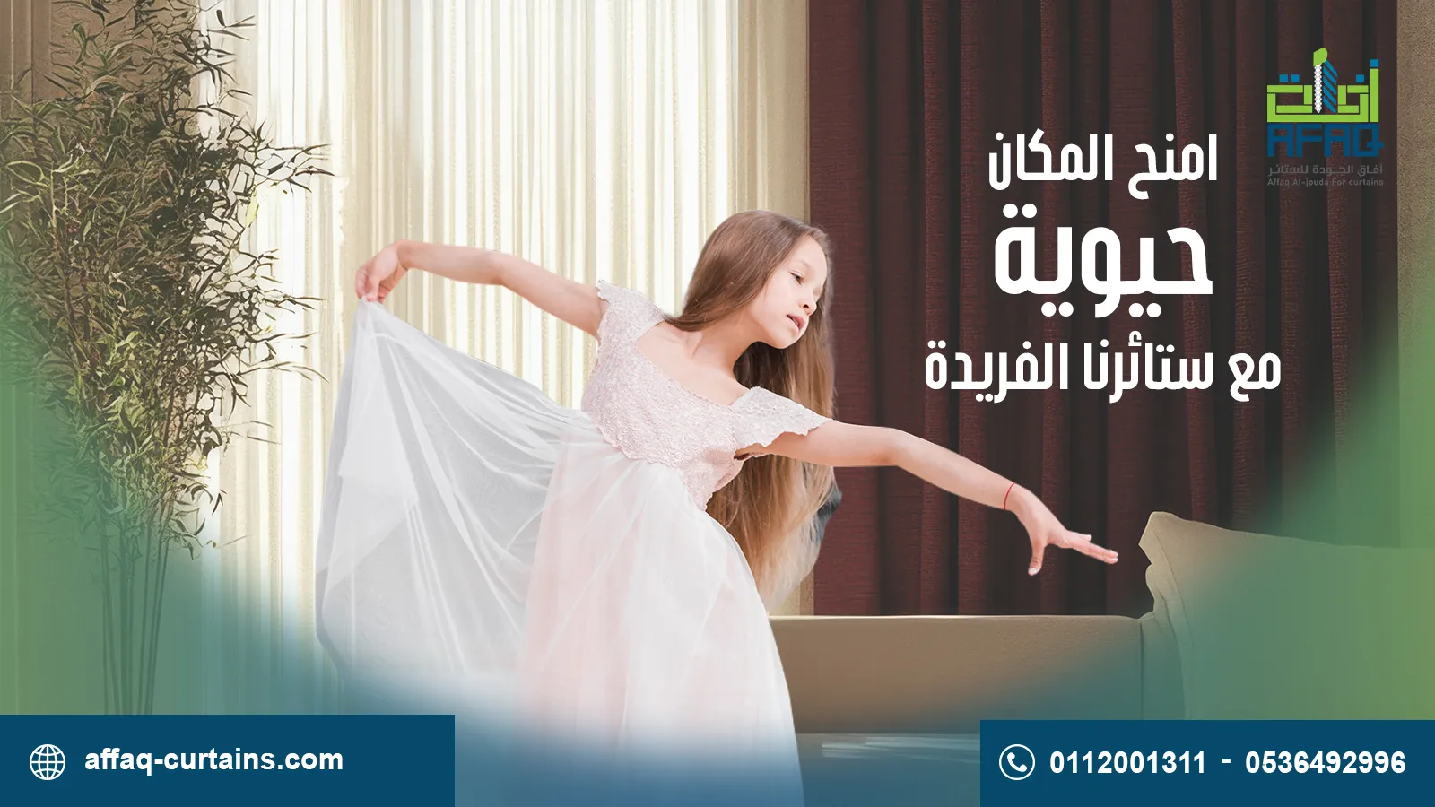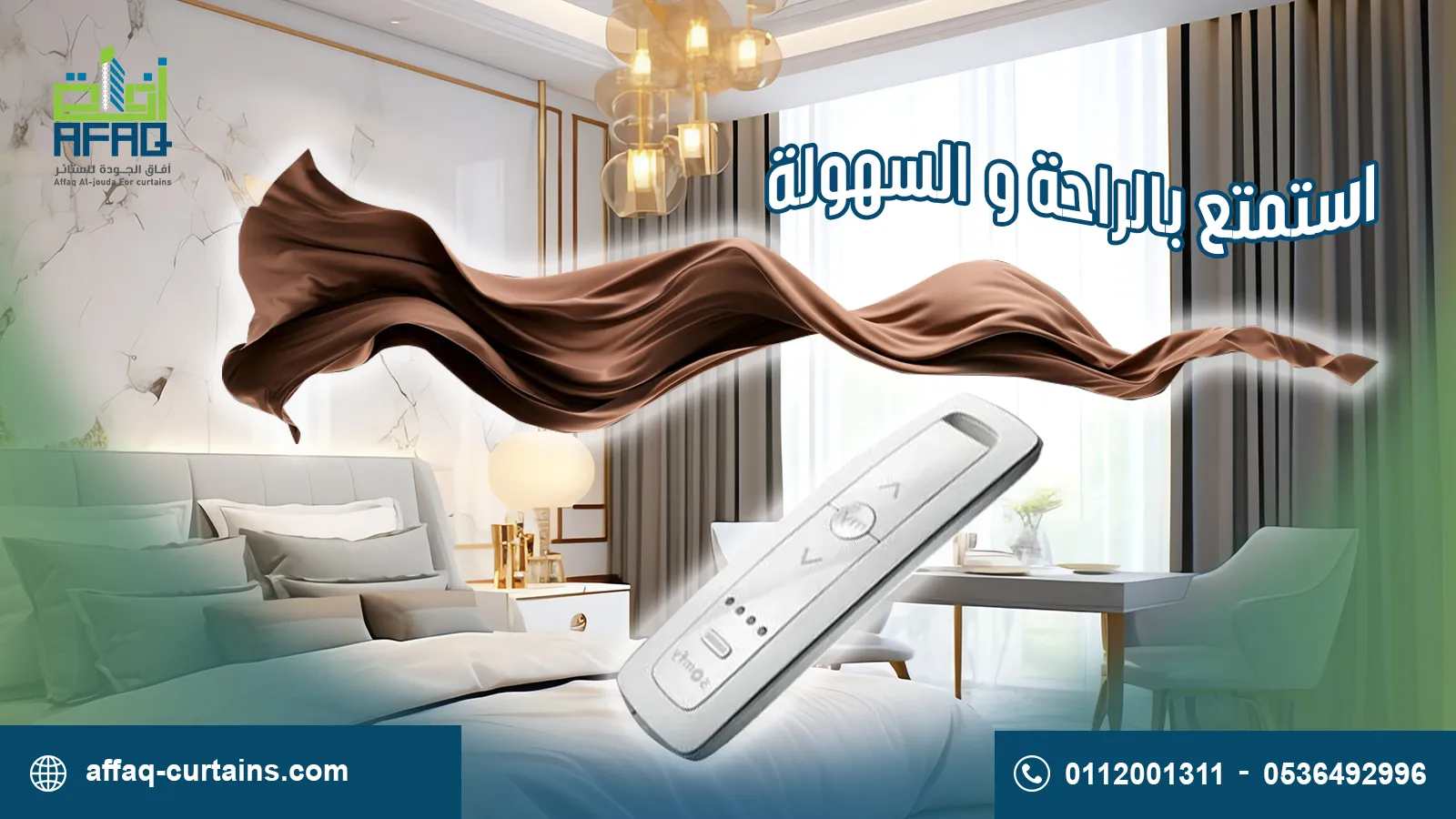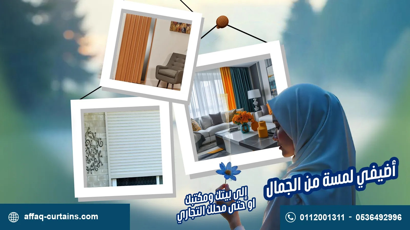 في "آفاق الجودة للستائر"، نقدم حلولاً متكاملة للستائر والتصميم الداخلي. نعمل بشغف على تحويل كل مساحة إلى تجربة بصرية تجمع بين الأناقة والوظيفة.
